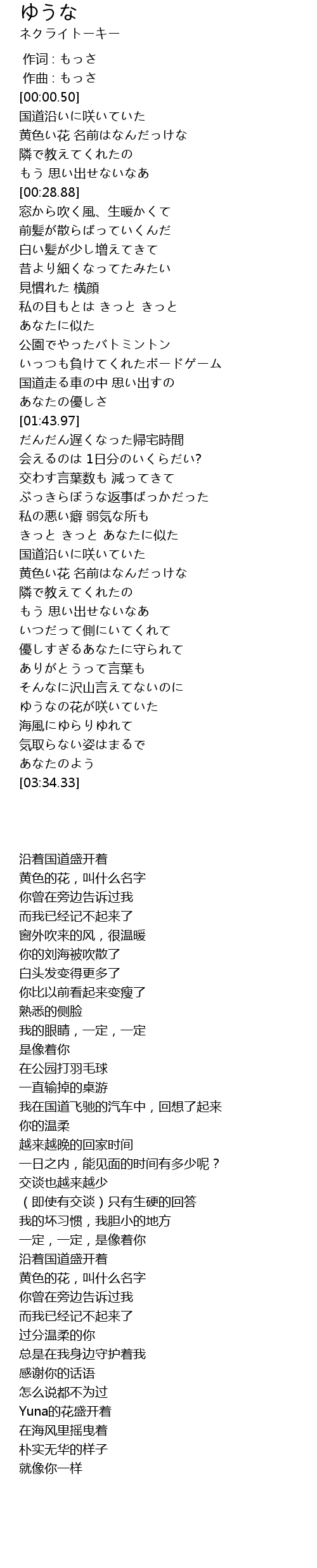 | [02:37.79] | 黄色い花 名前はなんだっけな |