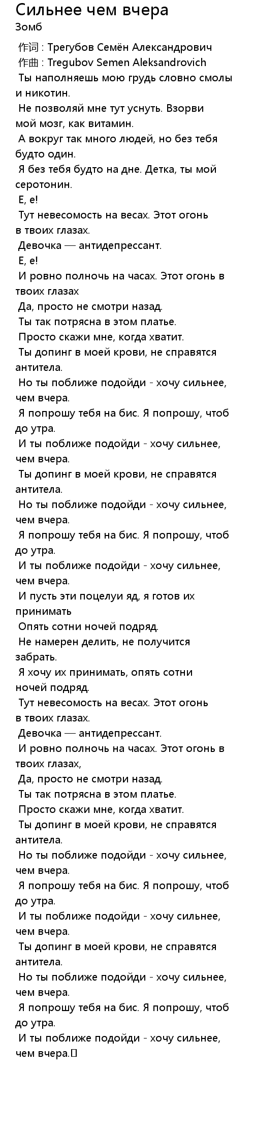 Сильнее чем вчера 歌词