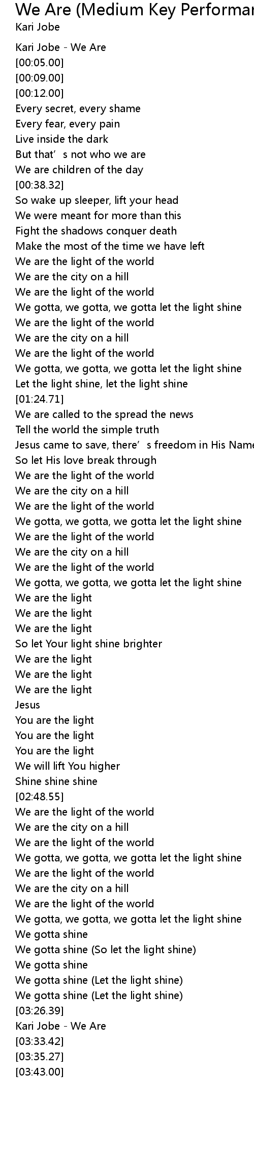 | [03:28.75] | Kari Jobe We Are |
