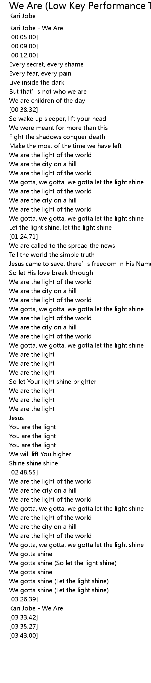 | [03:20.33] | We gotta shine (Let the light shine) |
