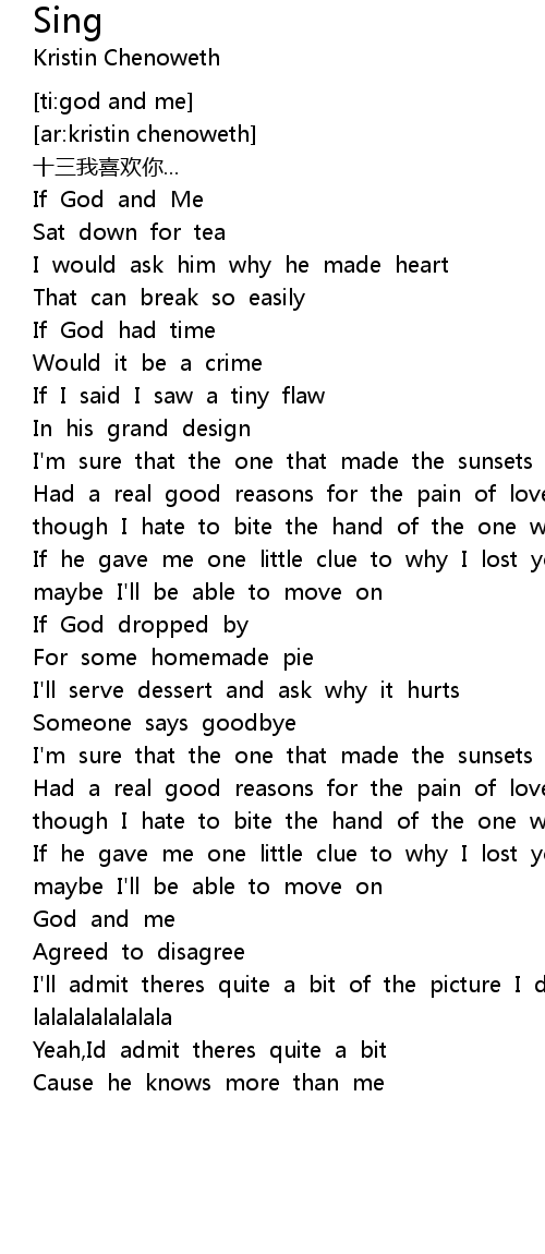| [00:39.88] | I'm sure that the one that made the sunsets and the seasons |
