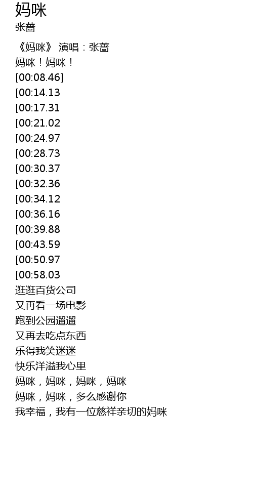 | [02:17.43] | 《妈咪》 演唱:张蔷 |