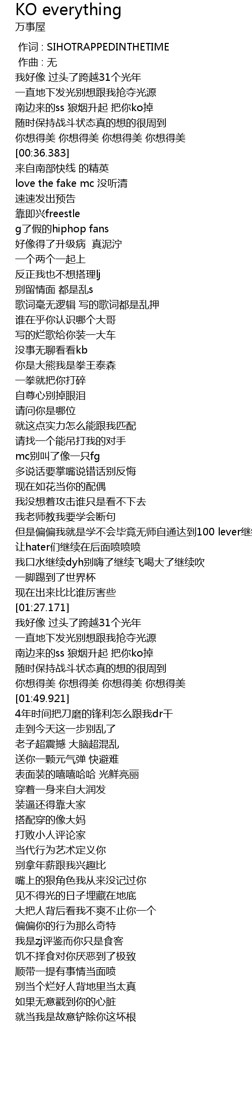 | [00:48.632] | 歌词毫无逻辑 写的歌词都是乱押 |