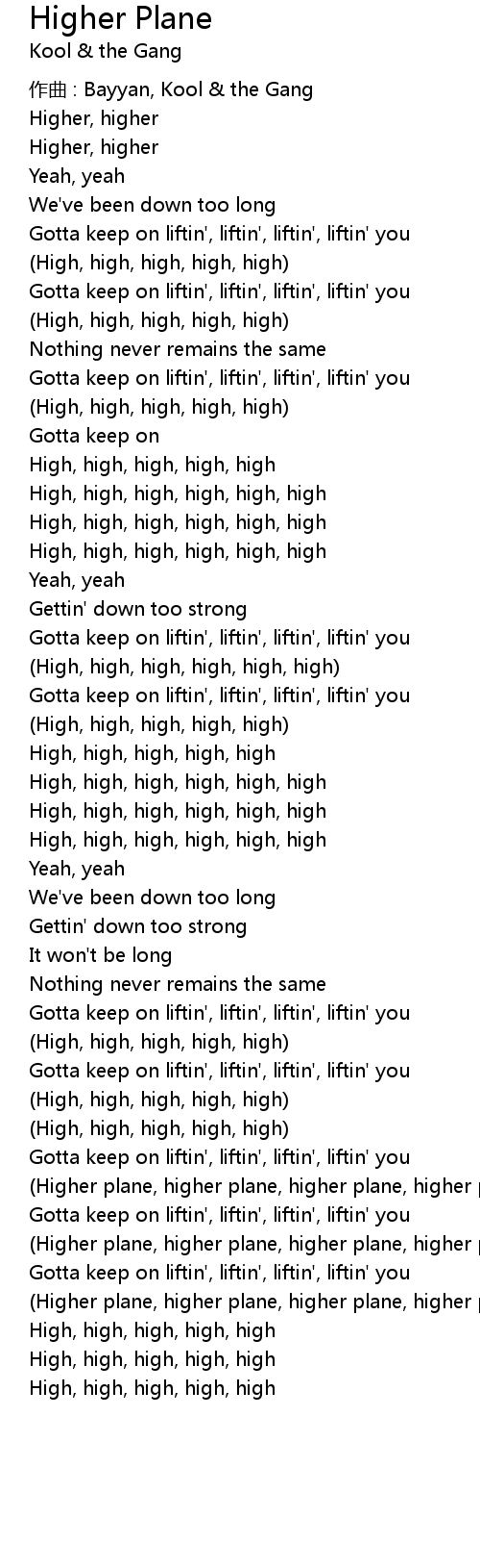 | Higher plane, higher plane, higher plane, higher plane | |