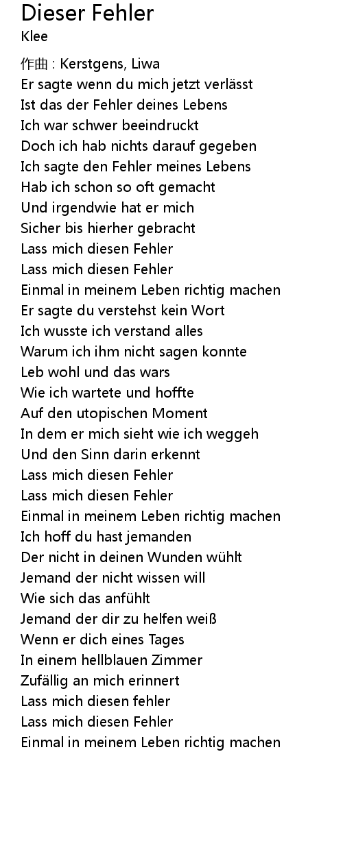 | 歌曲 | Dieser Fehler |