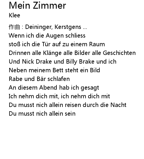 | 歌曲 | Mein Zimmer |