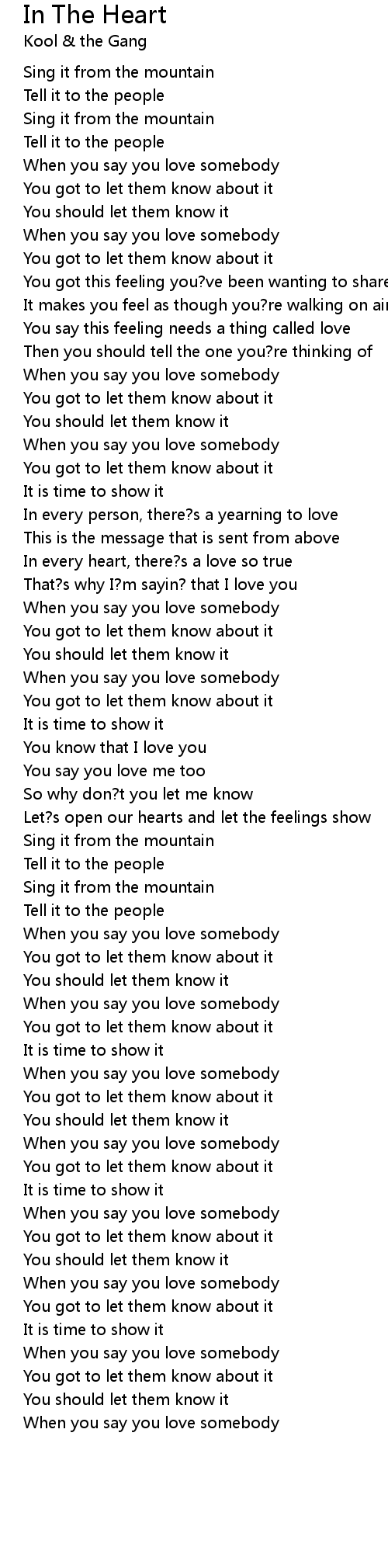 Let?s open our hearts and let the feelings show |