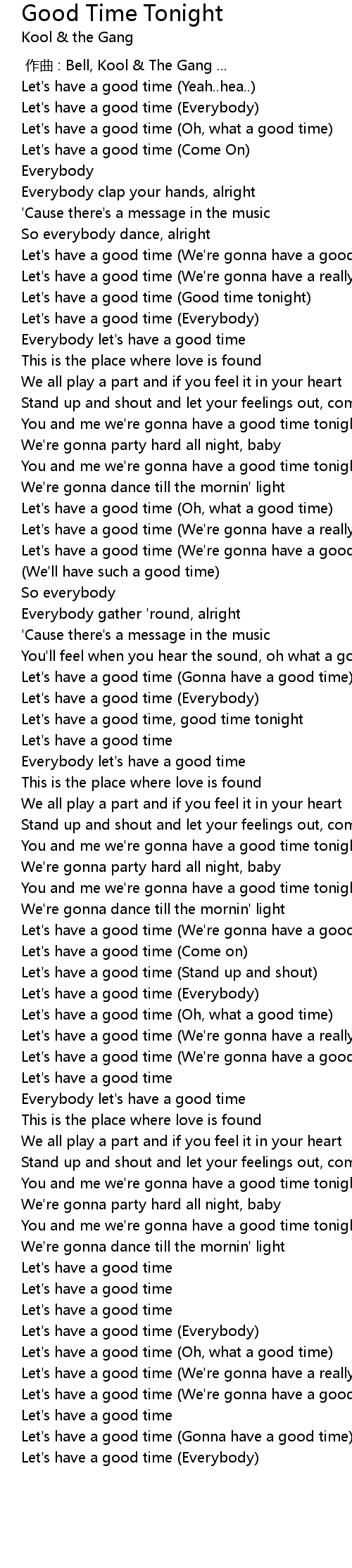 | [01:52.209] | Let's have a good time (We're gonna have a good time tonight) |