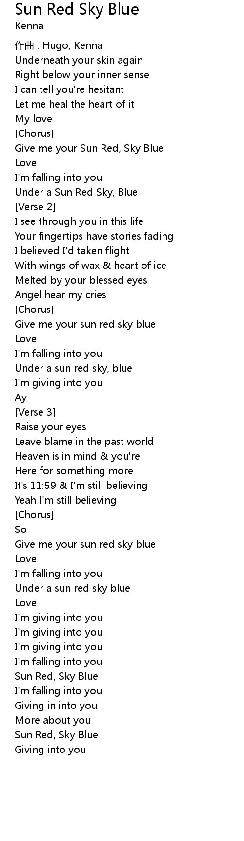 | Give me your sun red sky blue | |