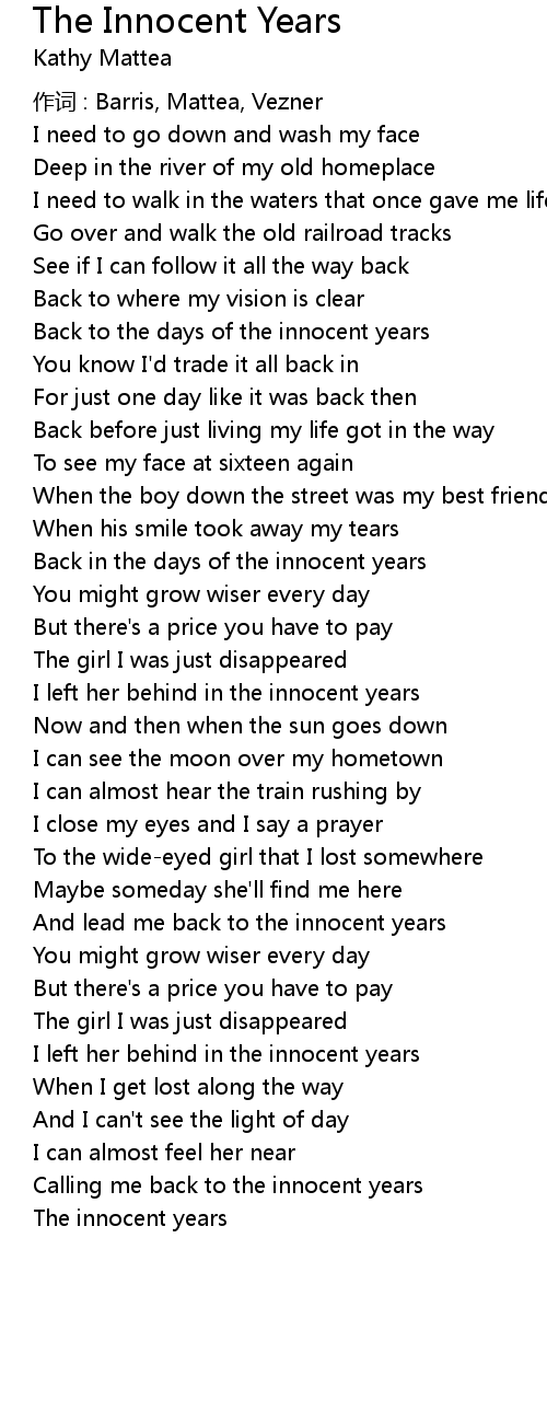 | 歌曲 | The Innocent Years |