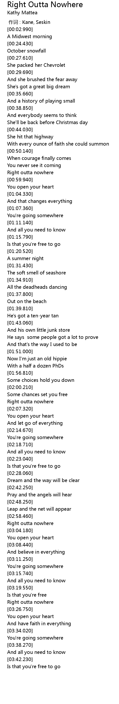 | [03:23.700] | Right outta nowhere |