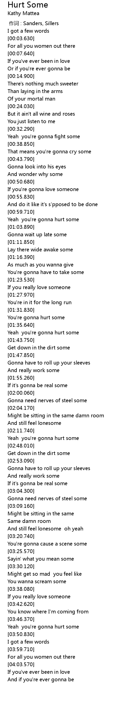 | [03:47.950] | Yeah you' re gonna hurt some |