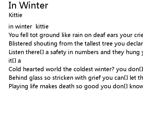 | Cold hearted world the coldest winter? you don see me like i know you hiding | |
