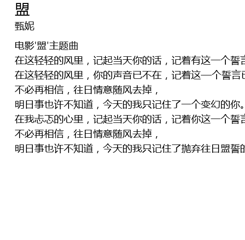 | 在这轻轻的风里,记起当天你的话,记着有这一个誓言似是永在。 | |