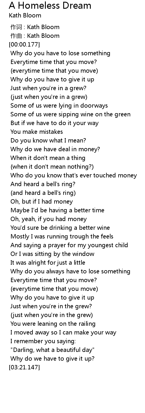 | [00:00.000] | 作词 : Kath Bloom |
