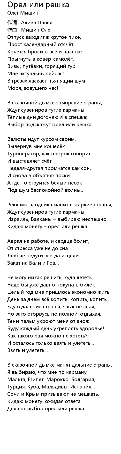 Кидаю монету – орёл или решка… |