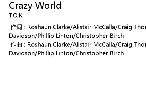 | [00:00.000] | 作曲 : Roshaun Clarke/Alistair McCalla/Craig Thomspon/Xavier Davidson/Phillip Linton/Christopher Birch |