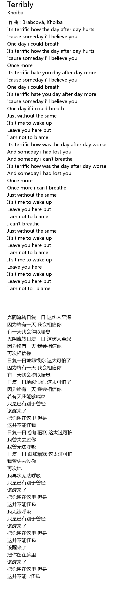 | [02:44.490] | 日复一日 愈加糟糕 这太过可怕 |