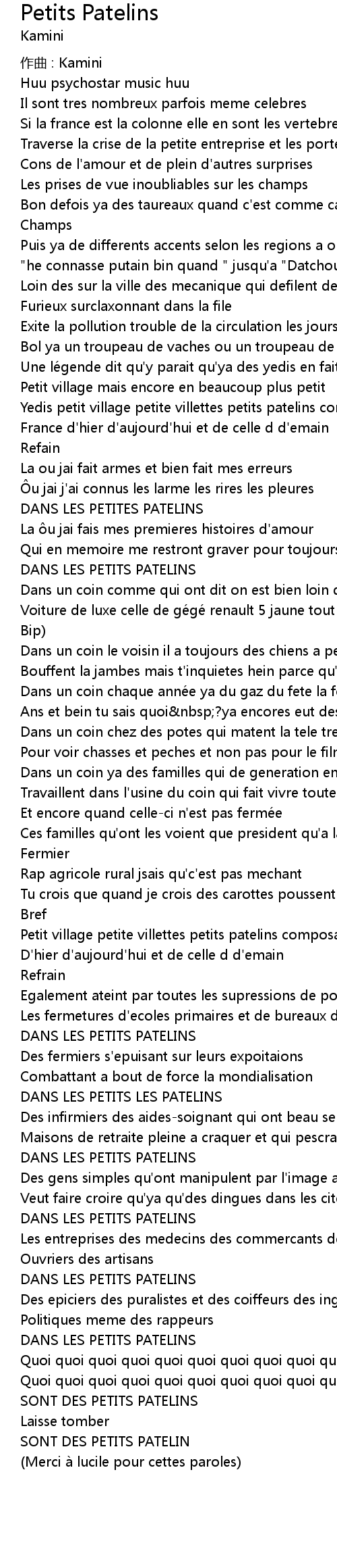 | 歌曲 | Petits Patelins |