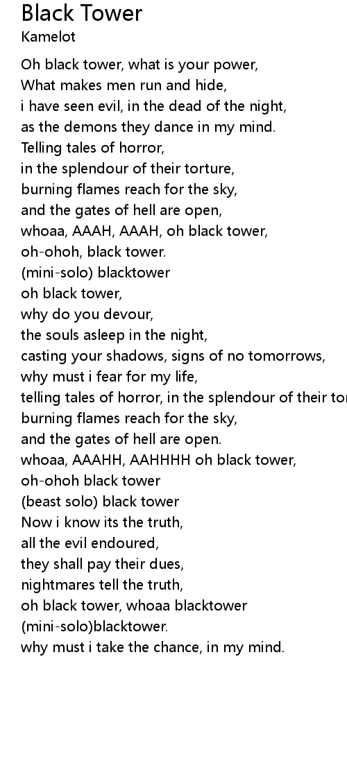 | whoaa, AAAHH, AAHHHH oh black tower, | |