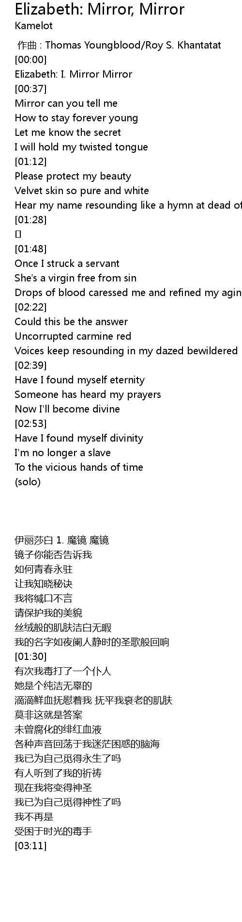 | [00:19] | 伊丽莎白 1. 魔镜 魔镜 |