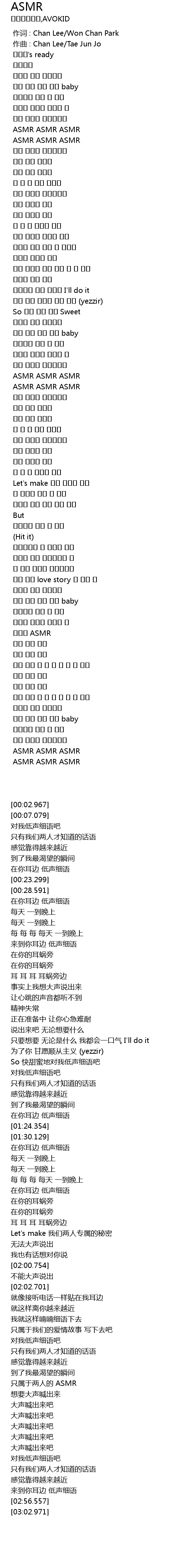| [00:00.000] | 作词 : Chan Lee/Won Chan Park |