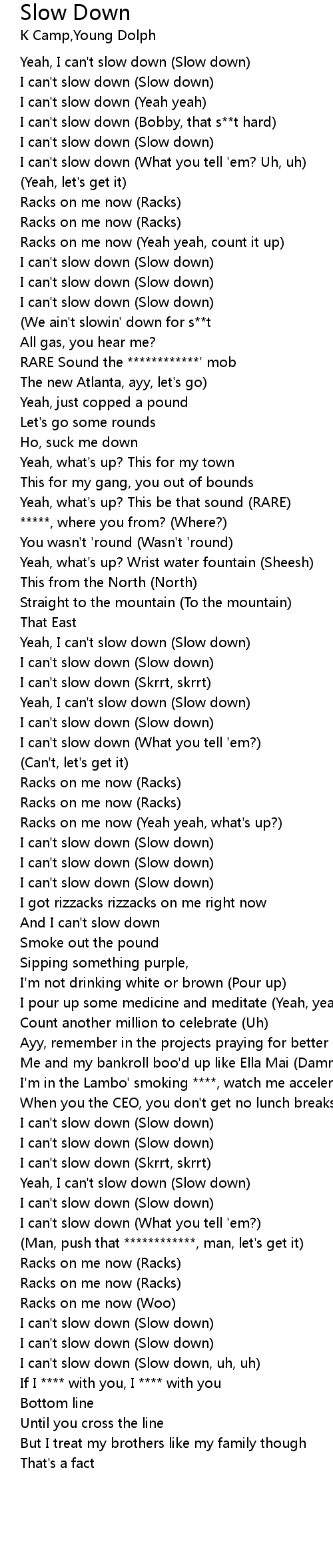 Yeah, I can't slow down (Slow down) |