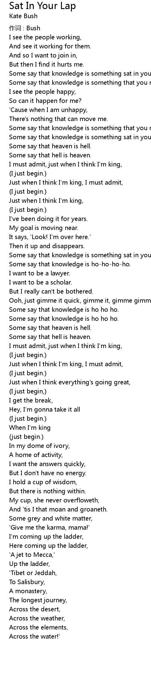 | 歌曲 | Sat In Your Lap |