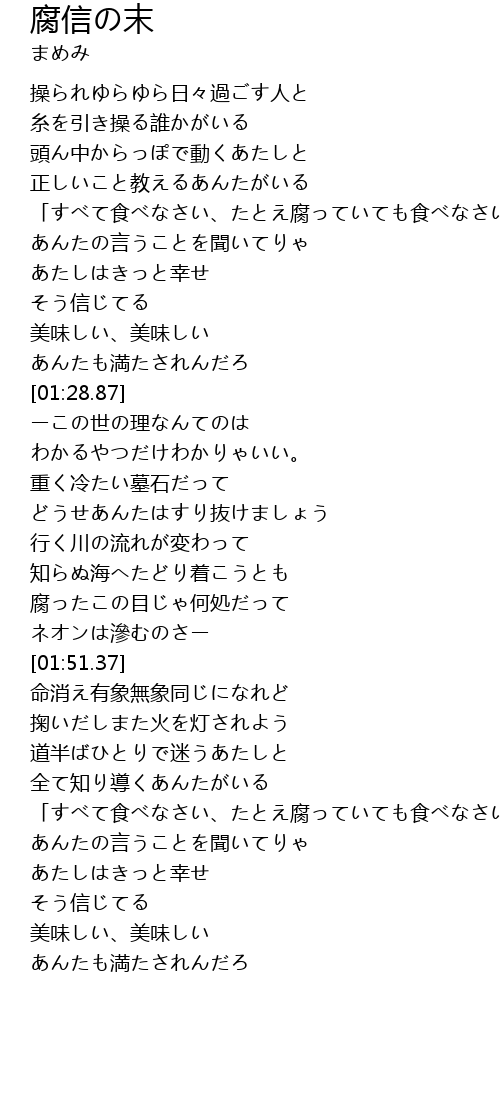 | [00:50.33] | 「すべて食べなさい、たとえ腐っていても食べなさい」 |