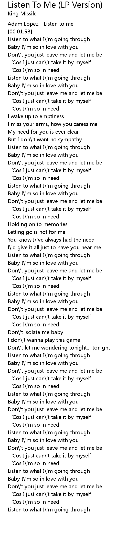| [01:50.96] | Listen to what I\'m going through |