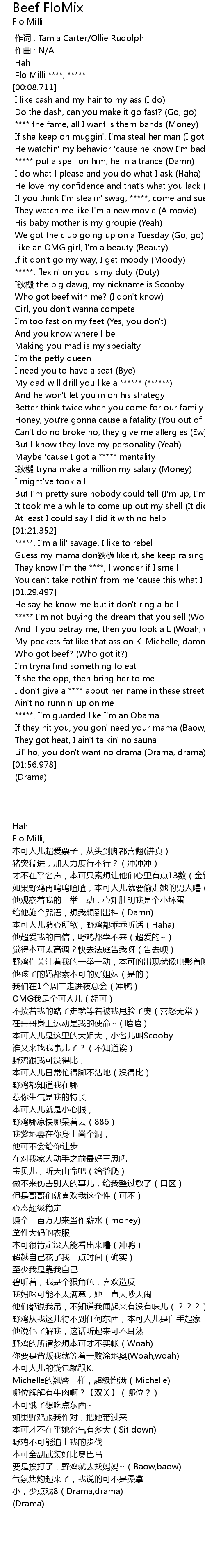 | [01:23.448] | Guess my mama don huo zhua like it, she keep raising hell |