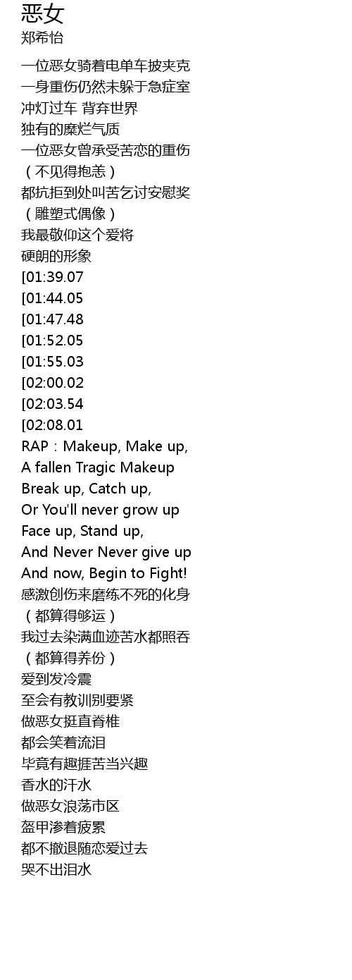 | [00:35.15][01:39.07] | 做恶女挺直脊椎 |