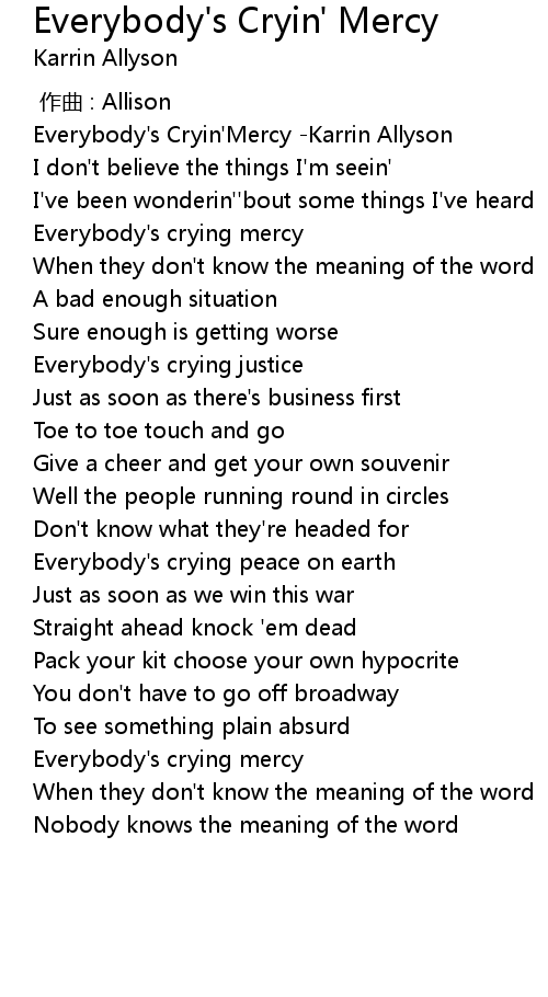 | 歌曲 | Everybody's Cryin' Mercy |