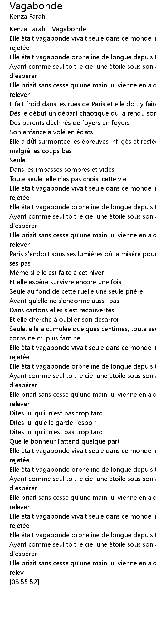| [00:01.98] | Kenza Farah - Vagabonde |