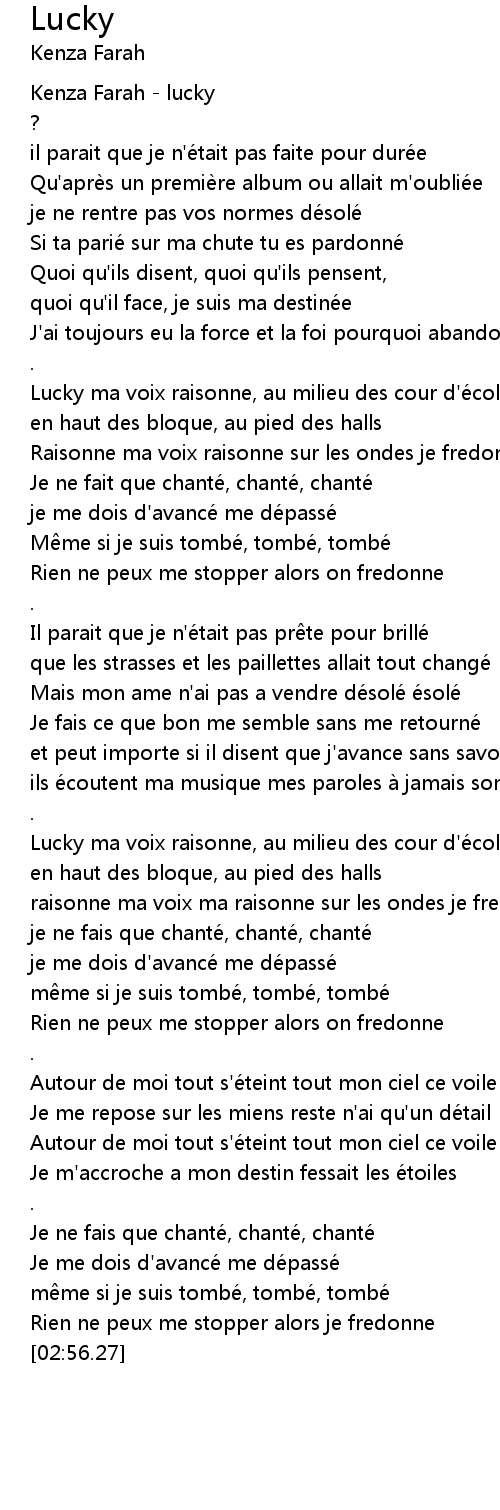 | [00:41.57] | Lucky ma voix raisonne, au milieu des cour d'écoles, |