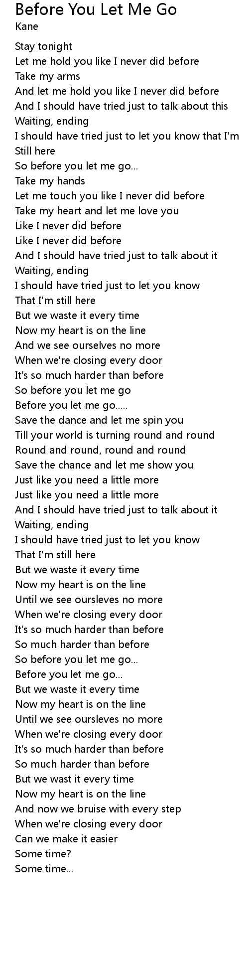 | So before you let me go | |
