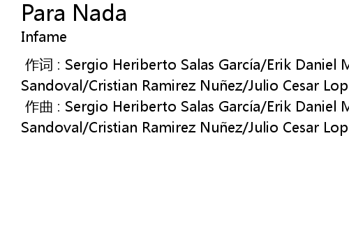 | [00:00.000] | 作曲 : Sergio Heriberto Salas García/Erik Daniel Martinez Sandoval/Cristian Ramirez Nuñez/Julio Cesar Lopez Rubio |