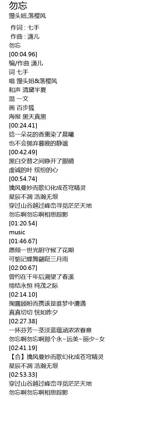 | [03:00.31] | 勿忘啊勿忘啊相思踪影 |