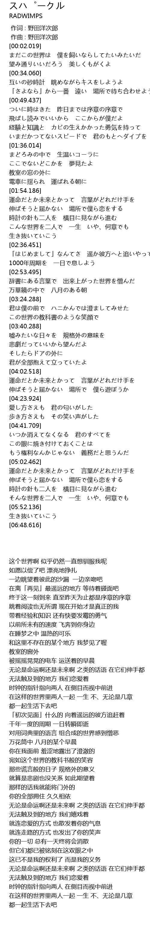 | [00:00.000] | 作词 : 野田洋次郎 |