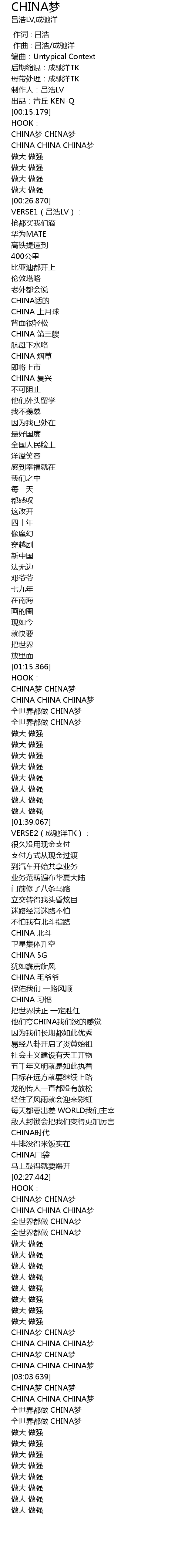 | [00:18.618] | CHINA CHINA CHINA梦 |