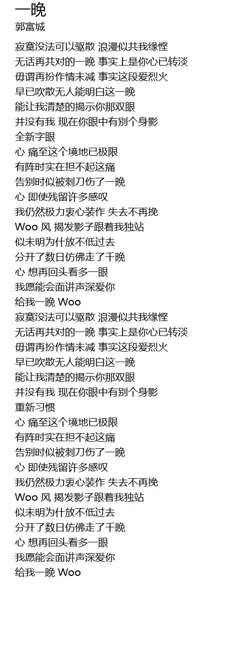 | [03:56.17] | 给我一晚 Woo |