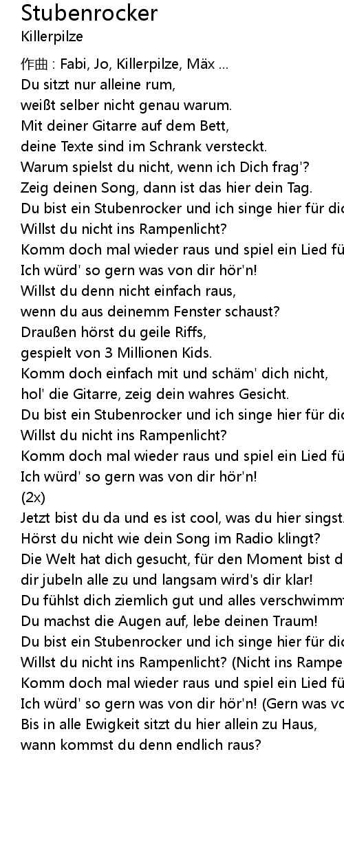 | Du bist ein Stubenrocker und ich singe hier fü r dich. | |