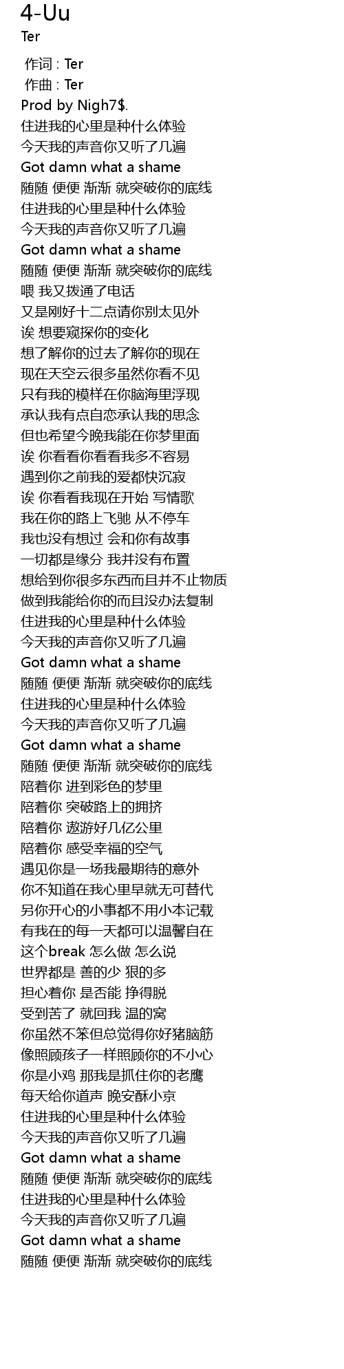 | [01:46.84] | Got damn what a shame |