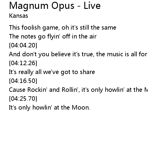 | [04:29.67] | It's only howlin' at the Moon. |
