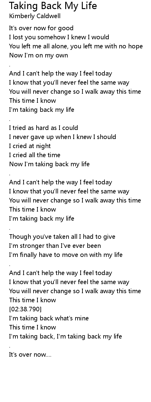 I'm taking back, I'm taking back my life |