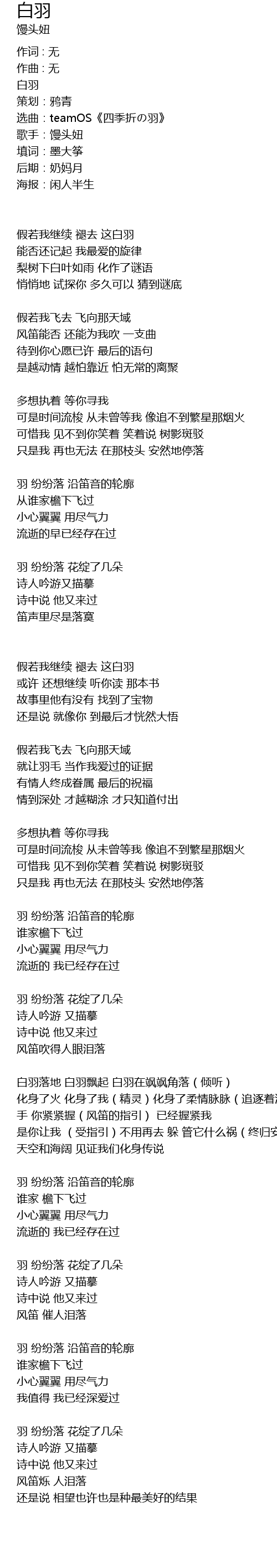 | 白羽落地 白羽飘起 白羽在飒飒角落(倾听) | |