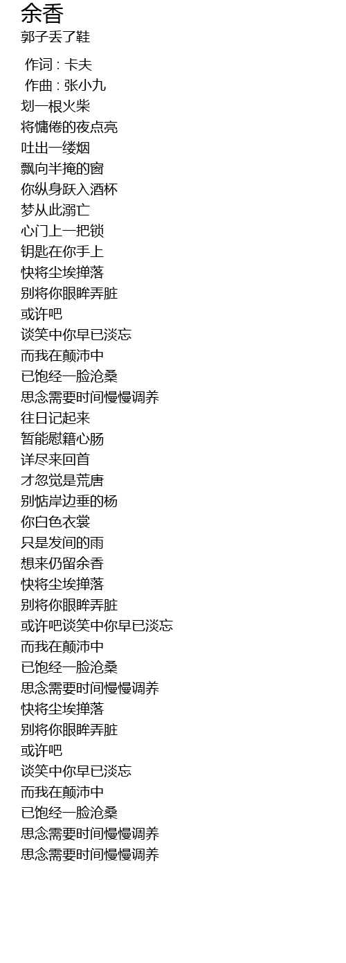 | [00:00.000] | 作词 : 卡夫 |