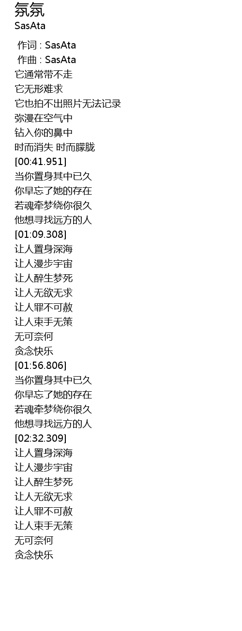 | [00:01.000] | 作曲 : SasAta |