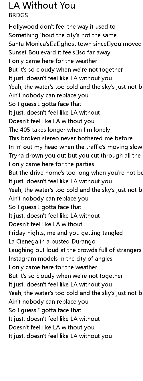 | [00:57.727] | Doesn't feel like LA without you |