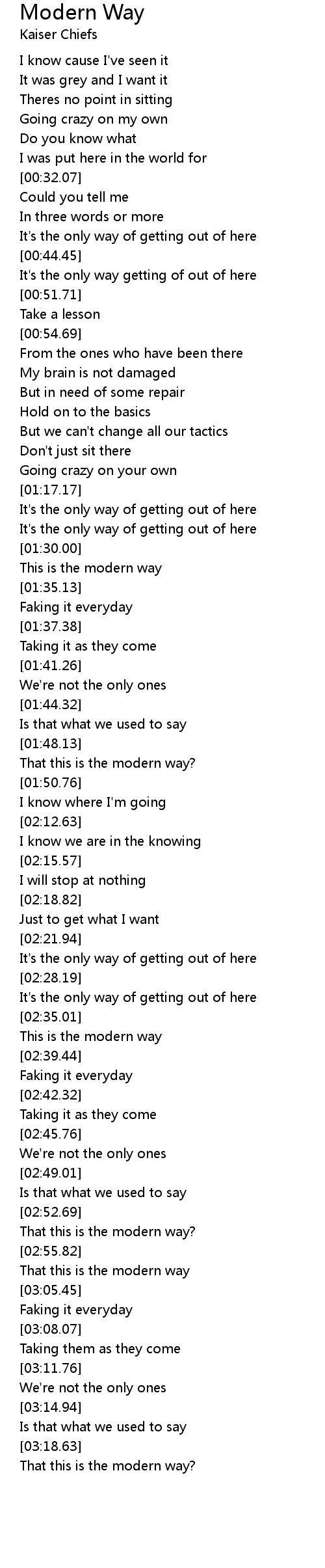 Modern Way 歌词